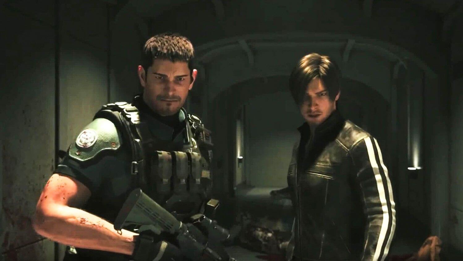 인간병기 레온과 크리스의 좀비 학살씬이다